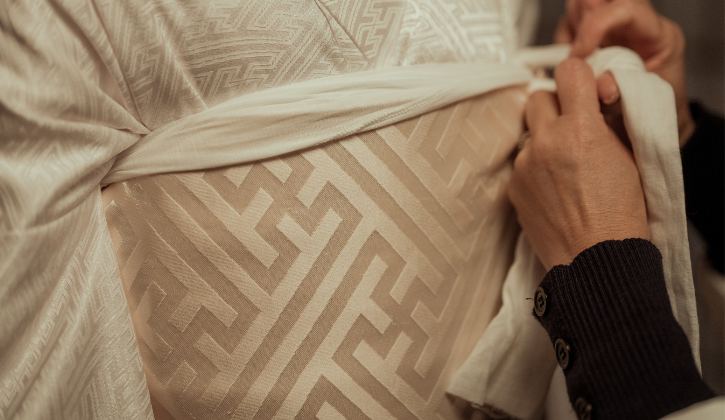 「襦袢」と「掛下」を着付けて、打掛を羽織ります。